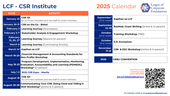 A resounding success! LCF’s CSR Institute held the Resource Mobilization: Grant Writing Workshop from September 22-25, 2025. The training workshop was co-hosted with Jesus V. Del Rosario (JVR) Foundation, Inc The workshop aimed to identify the importance of the grant…