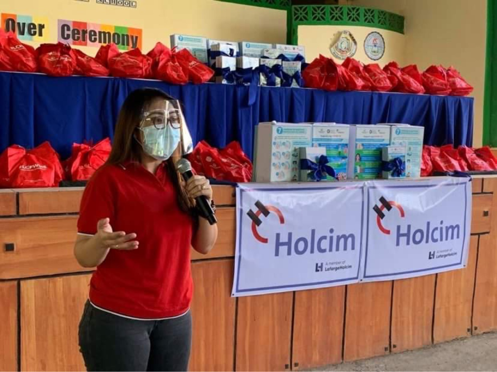 Holcim Philippines turns over 200 packs of hygiene kits, washable face masks, WASH storybooks, and info-education materials on proper handwashing and COVID-19 prevention for the students of Talaga Elementary School and Mabini Central School in Batangas. The community members of Brgy. Talaga East and Brgy. Pulong Balibaguhan also receive posters and flyers to strengthen its campaign on proper hygiene to fight COVID-19.