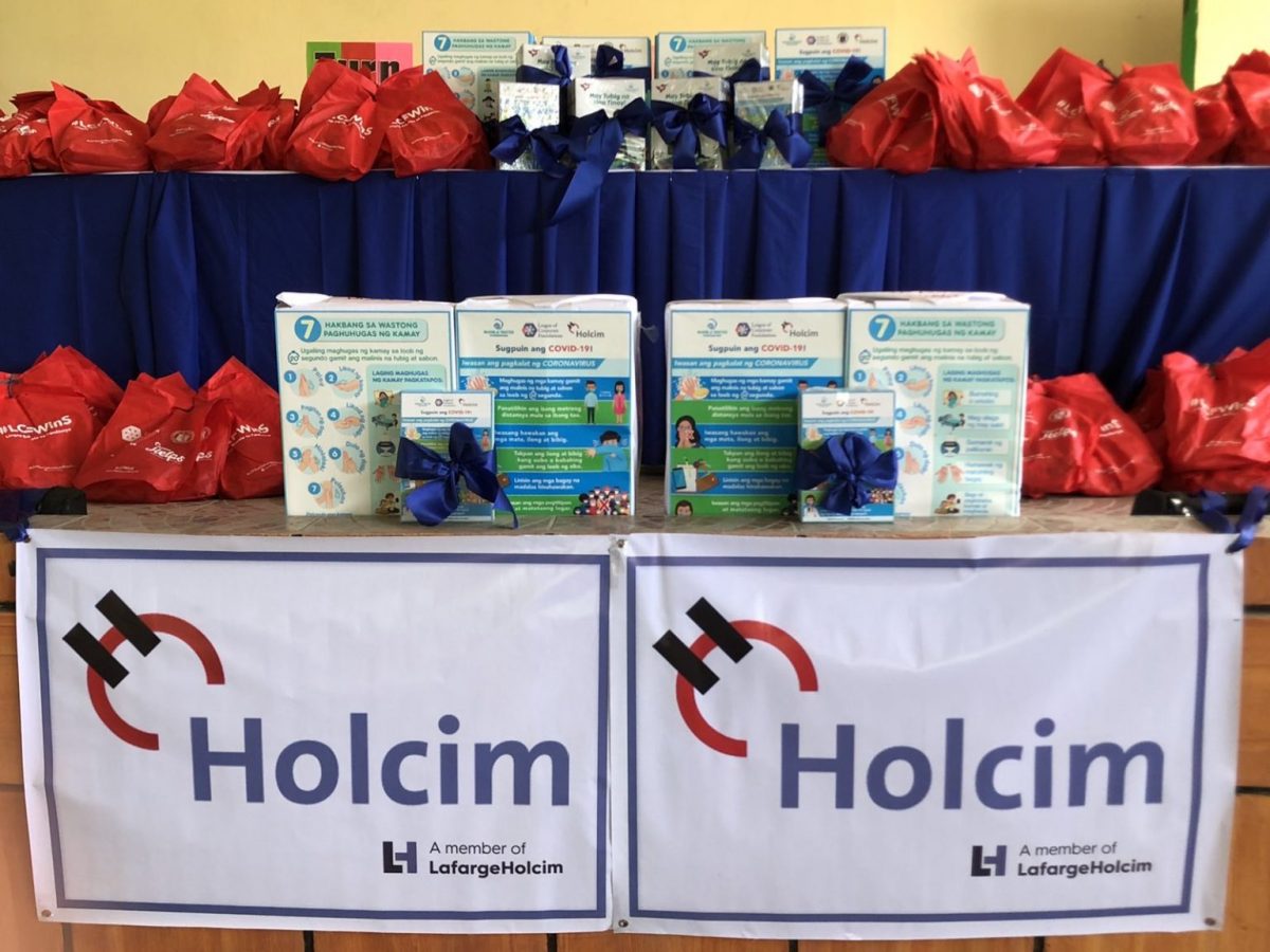 Holcim Philippines turns over 200 packs of hygiene kits, washable face masks, WASH storybooks, and info-education materials on proper handwashing and COVID-19 prevention for the students of Talaga Elementary School and Mabini Central School in Batangas. The community members of Brgy. Talaga East and Brgy. Pulong Balibaguhan also receive posters and flyers to strengthen its campaign on proper hygiene to fight COVID-19.