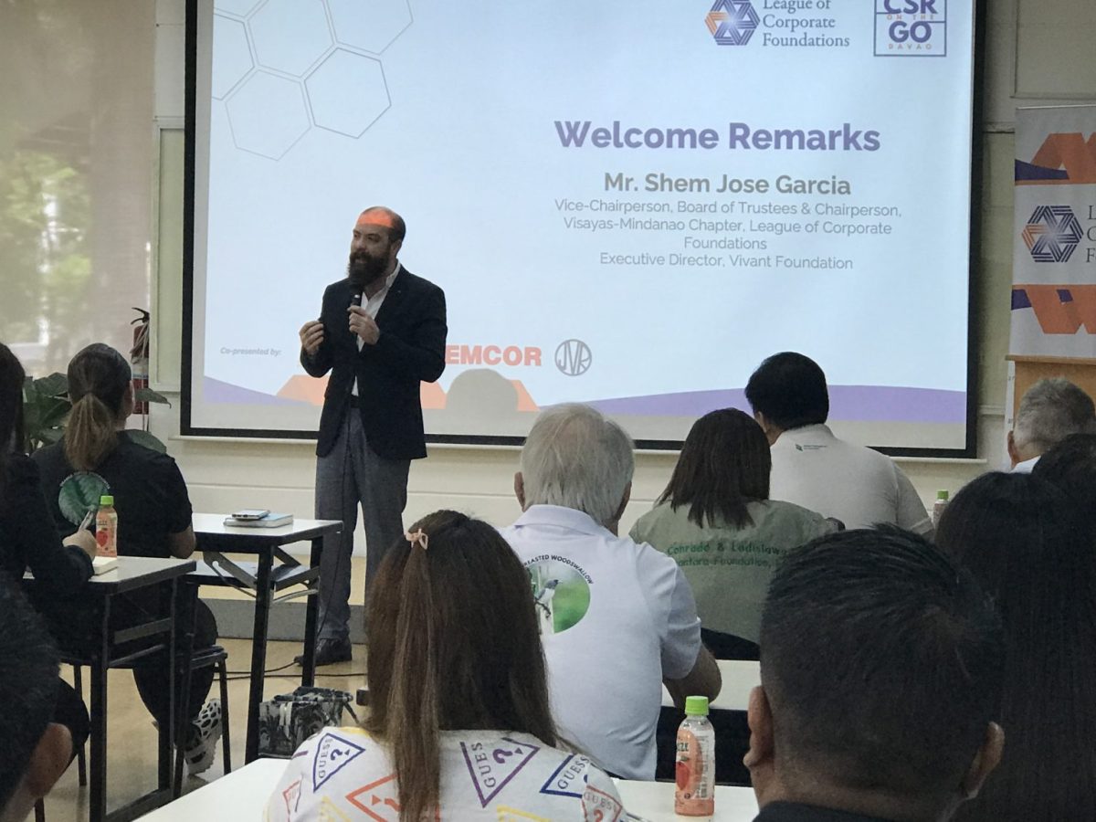 LCF Board Vice-Chairperson Shem Jose Garcia of Vivant Foundation, Inc; Communications and Public Affairs Director Geoffrey Garcia of Pfizer Philippines Foundation; and LCF Executive Director Celine Santillan spoke at the Davao leg of this year’s CSR On the Go, held today at EMCOR Incorporated and at the Ateneo de Davao University in Davao City.