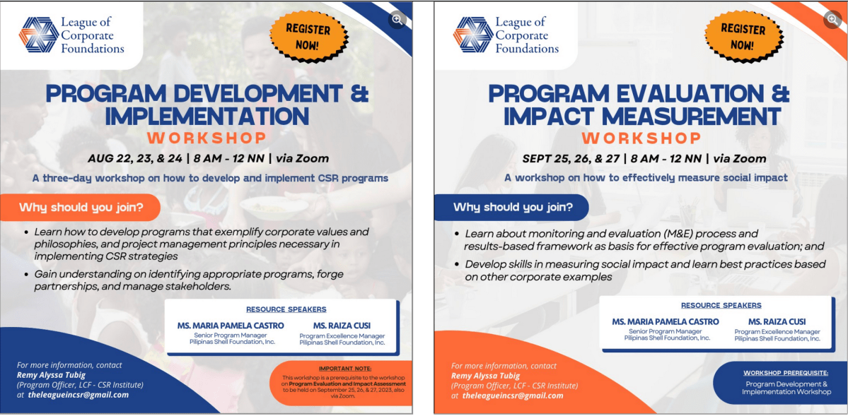 For inquiries, please send Ms. Remy Alyssa Tubig (CSR Institute Program Officer) an email at theleagueincsr@gmail.com