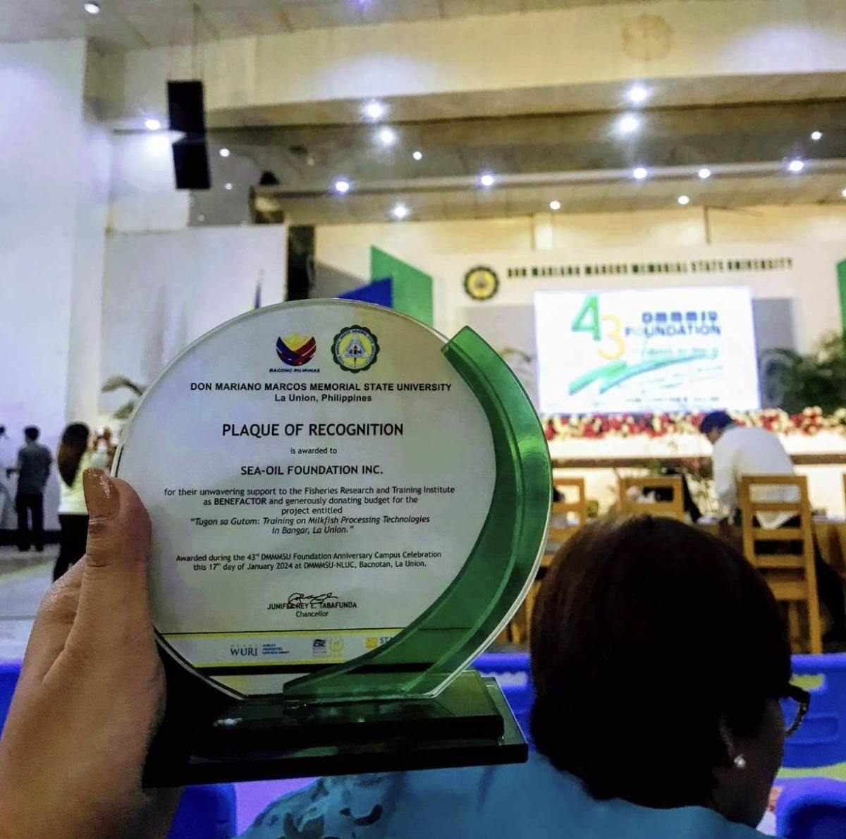 La Union – On the occasion of its 43rd Foundation Anniversary, the Don Mariano Marcos Memorial State University (DMMMSU) acknowledged SFI’s support to the extension and outreach program of its Fisheries Research and Training Institute in a ceremony held on January 17, 2024.