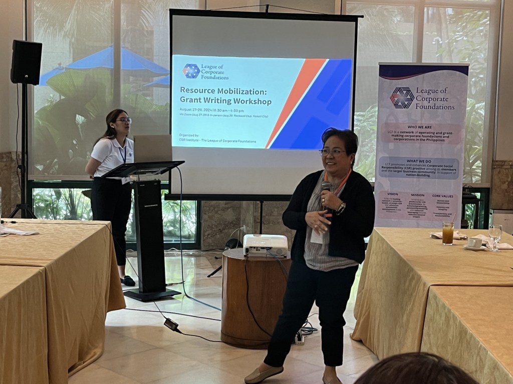 LCF’s CSR Institute (CSRI) has successfully concluded the 2024 Resource Mobilization: Grant Writing Workshop. The workshop was held virtually from August 27 to 28 and in person at the Rockwell Club in Makati City on August 29.