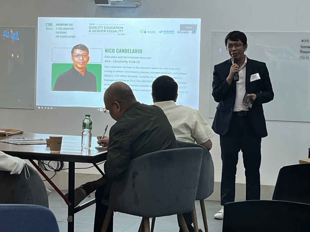 - Quality Education: Nico Candelario, Education and Governance Innovator, AIM – Circularity Club 22; Diane Fajardo-Valencia, Deputy Executive Director, Philippine Business for Education (PBEd)