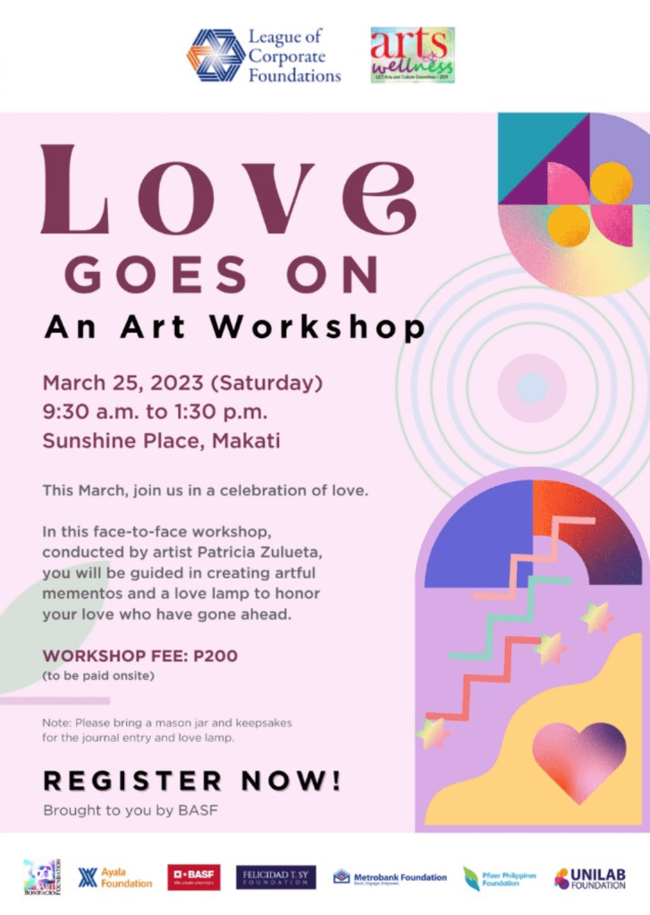 In line with LCF’s Arts & Culture Committee #InFocus this March, on Saturday, March 25, the Committee organized the “Love Goes On” art workshop in collaboration with artist Patricia Zulueta.