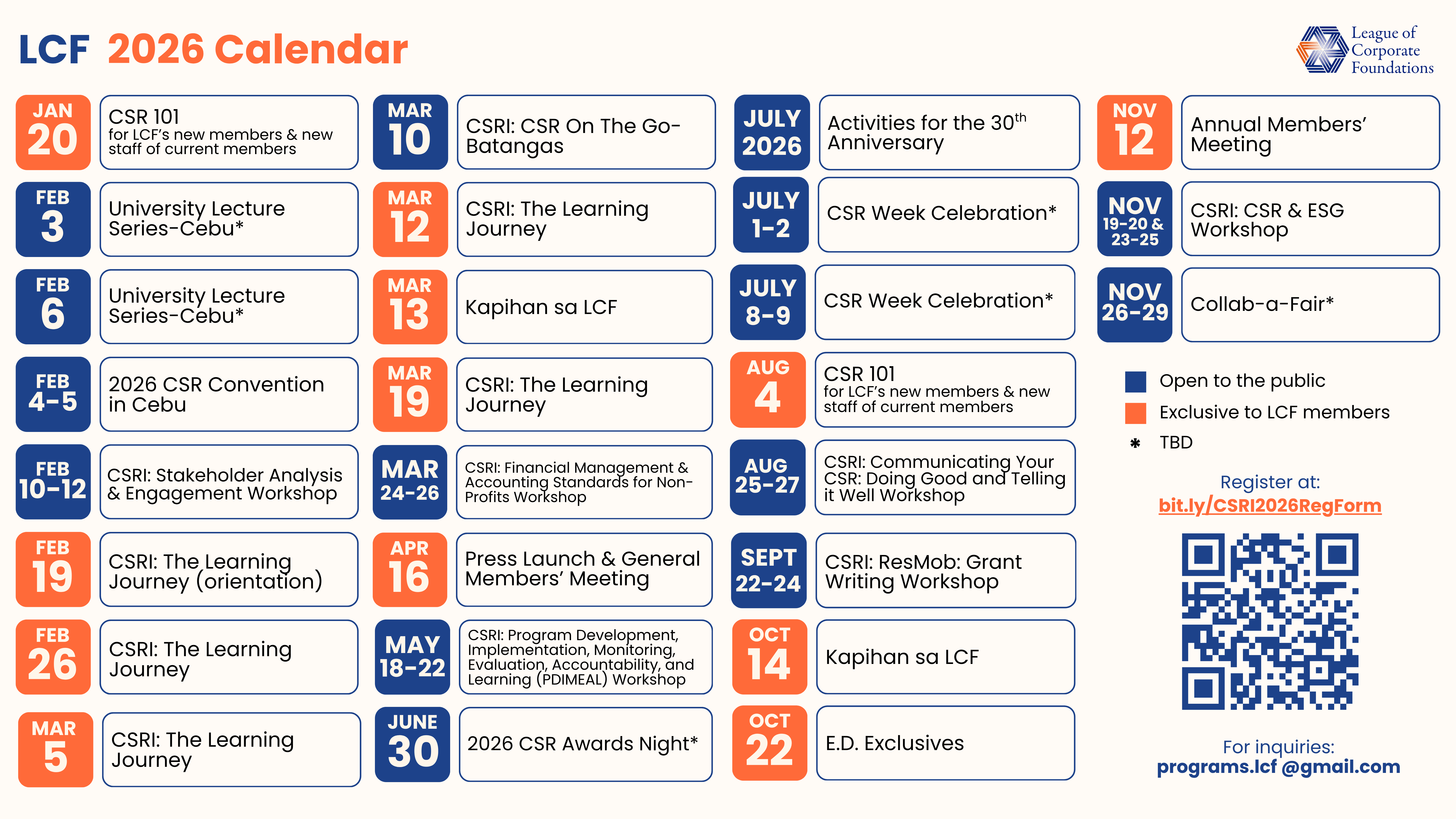The League of Corporate Foundations (LCF) has announced its leadership roster for 2026, naming its Board of Trustees along with Chairs and Vice-Chairs of its seven program-based committees. Leading the Board is Shem Jose Garcia, Executive Director of Vivant Foundation,…