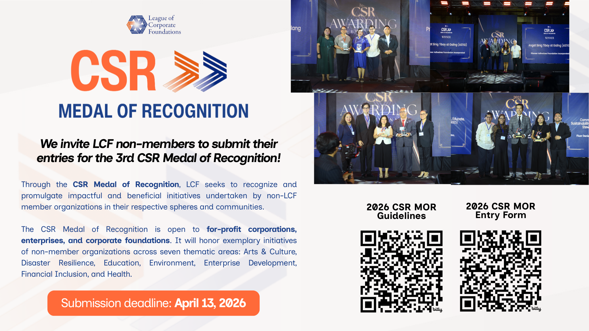 From February 10 to 12, the League of Corporate Foundations – CSR Institute (LCF-CSRI), in partnership with Zero Ten Park Makati (venue partner), conducted its Stakeholder Analysis and Engagement Workshop, held online via Zoom on February 10 & 11 and…